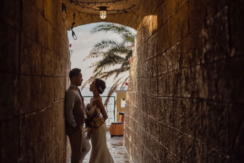 ビーチウェディングフォトと4Kドローンフォト(10カット)、ヘアセット、メイク、ウェディングドレス、アクセサリー、ブーケ、シューズ