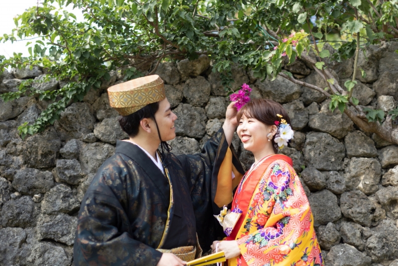 沖縄伝統の衣装・琉装とウェディングドレスの両方を着て撮影できるフォトプランです。ウェディングドレスはビーチで、琉装は古民家や世界遺産城跡、緑あふれえるロケ地でそれぞれ撮影します。目いっぱい フォトウェディングをお楽しみいただける、おすすめプランです。