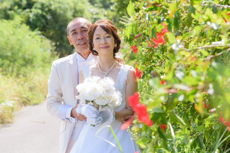 スタジオ撮影だから雨の日でも大丈夫!石垣島の写真館で撮影する正式な「白無垢」スタイルでの結婚記念写真撮影プラン。お二人の大切な1枚を、正確なライティングとポージングで撮影出来ます。石垣島の老舗写真館で結婚写真撮影を、ぜひ。