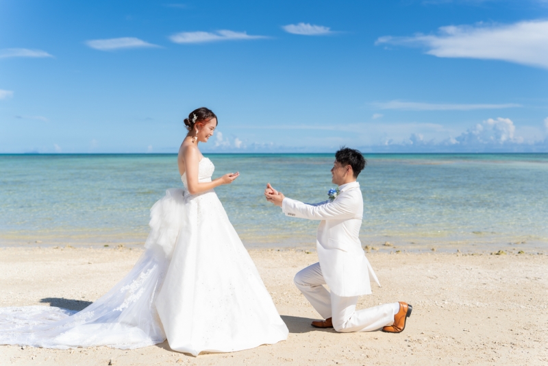 久米島の輝く美ら海と青い空をバックに一生忘れたくない一瞬をカメラマンが思い出の一枚に閉じ込めます。
