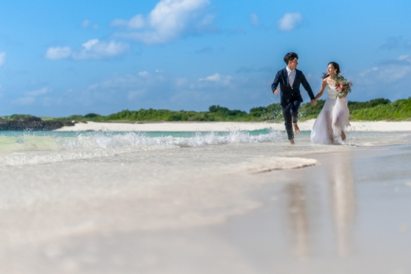 宮古島の美しい青い海で、水中撮影を思う存分残せます。