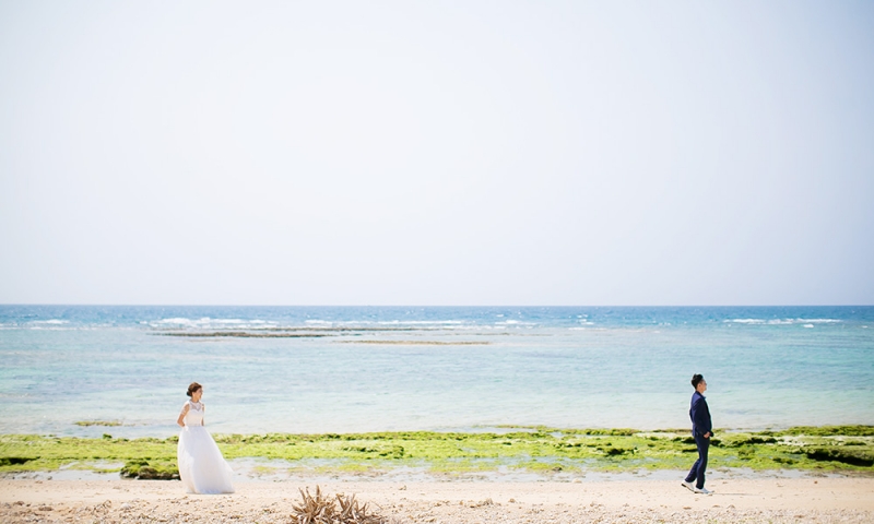 憧れのウェディングドレス、伝統美漂う着物姿。和装も洋装も両方着て記念写真を残したい。 ロケーションもそれぞれの衣装に合わせて撮影できる2スタイルプラン。 洋装はビーチや緑、和装は世界遺産の座喜味城址にて撮影。