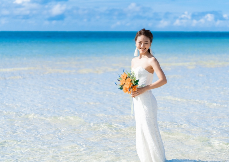 アクアウェディングの宮古島シンプルプラン。 宮古島の美しい青い海でフォトウェディングを。