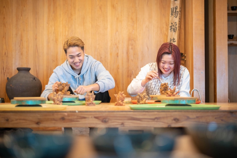 やちむん工房「やちむん土炎房」さんでのシーサー作りの体験の様子を、