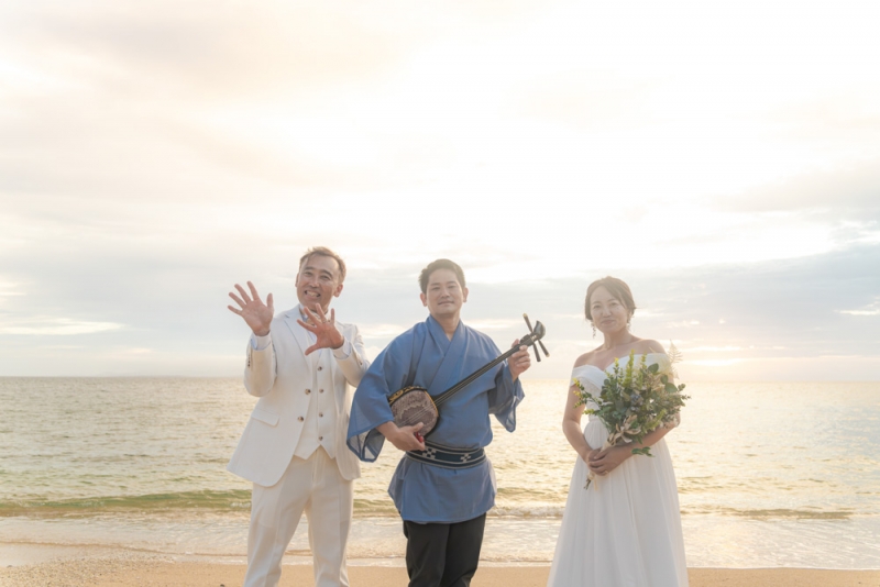 その日1番良いビーチとサンセット撮影に、三線の生演奏という贅沢。