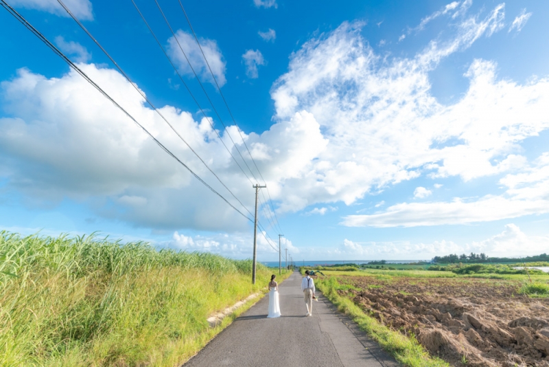 撮影スポットは【ビーチ】【サトウキビ畑】【サトウキビ収穫体験】石垣島のビーチで撮影した後、サトウキビ畑でサトウキビの収穫体験。サトウキビでファストバイト!ざわわの世界を堪能できます。
