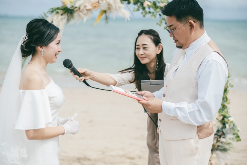沖縄のビーチでCASAオリジナルアーチの前で愛を誓う、人前式セレモニープラン。