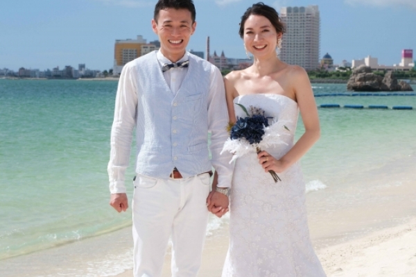 ビーチ撮影メインのベーシックプランです。店内でヘアメイク、着付け後ビーチに向かいます。これから挙式される方や、挙式後の後撮りにおススメです。