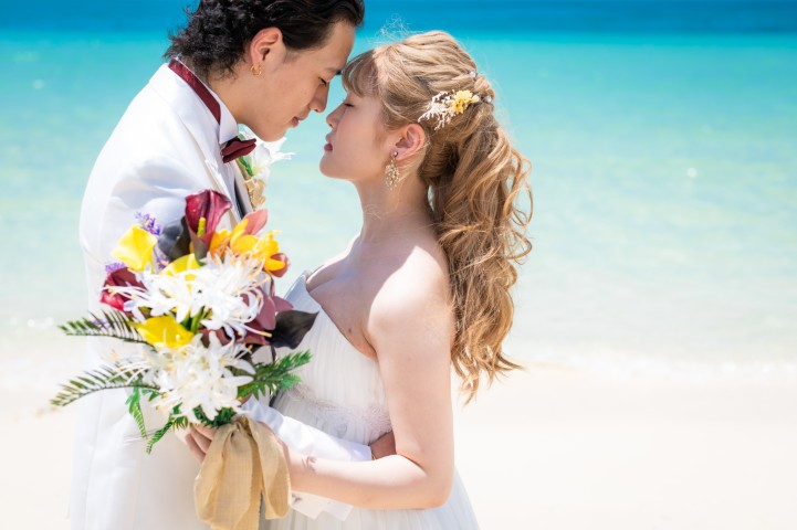 沖縄でのフォトウエディングを、気軽に楽しみたい方へ。 衣装・ヘアセット付き◎沖縄らしいロケーションで、 思い出に残る撮影を叶えるカジュアルプランです。 「まずは相談してみたい」「価格を抑えて撮影したい」 そんな方におすすめです。