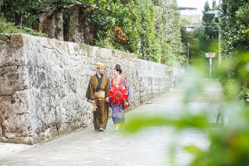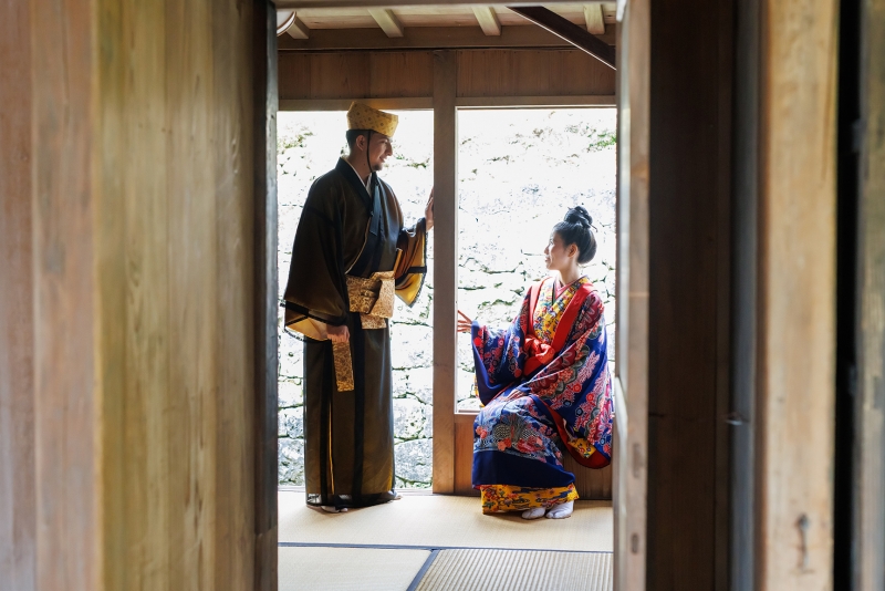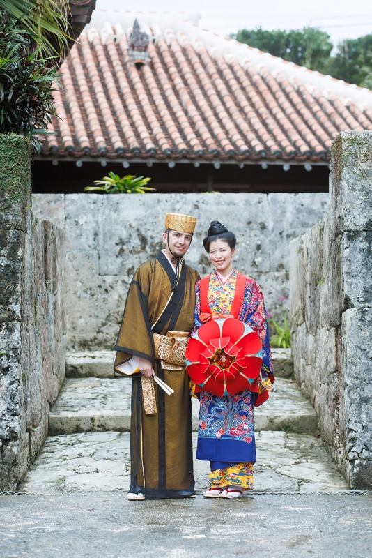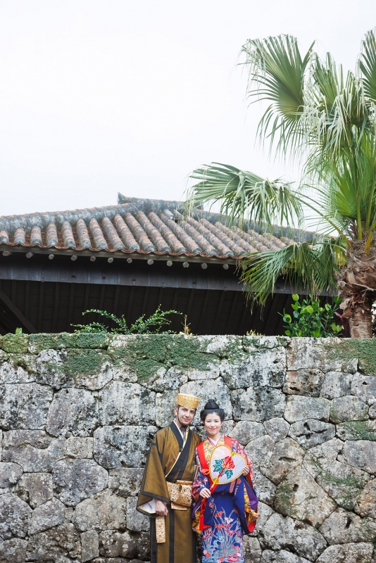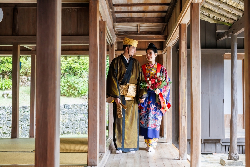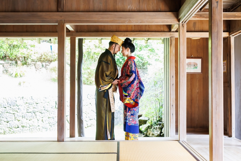 沖縄の伝統衣装「琉装」がよく映えるロケーション、中村家住宅で残すウェディングフォト。