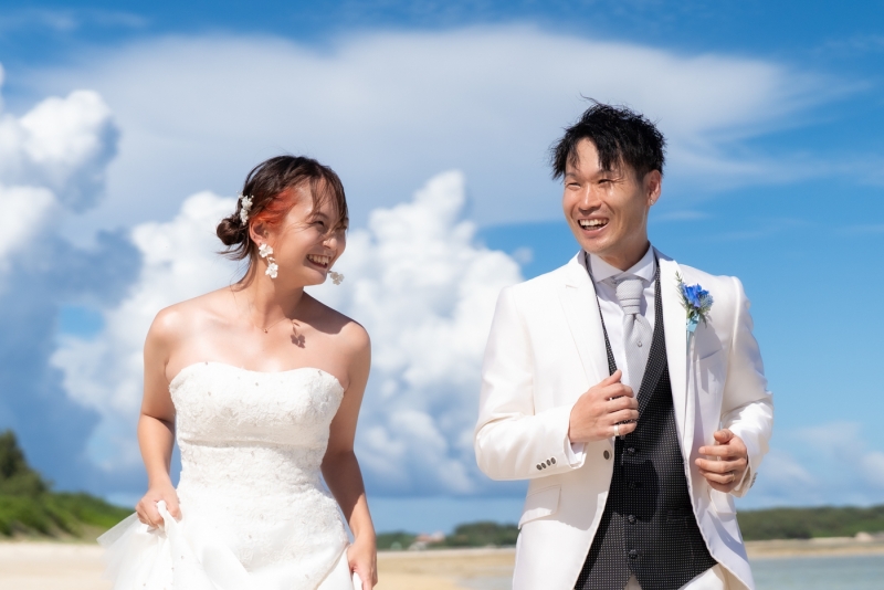 久米島の輝く美ら海と青い空をバックに、一生忘れたくない一瞬をカメラマンが思い出の一枚に閉じ込めます。